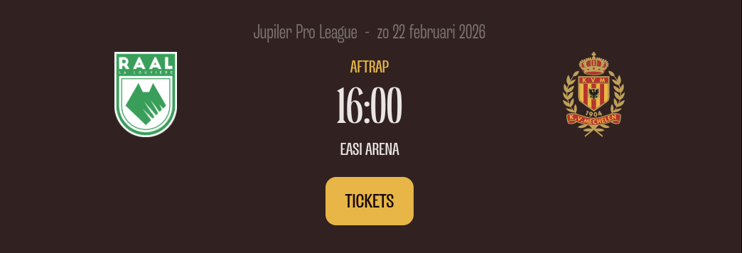 Een Thuiswedstrijd meepikken van KV Mechelen? Selecteer de Thuiswedstrijd en Bestel je tickets